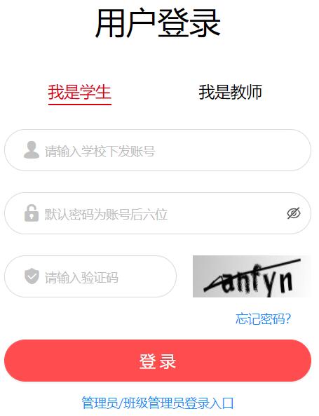 !學(xué)生和教師賬號(hào)均由學(xué)校管理員統(tǒng)一生成, 無需注冊(cè),請(qǐng)聯(lián)系校級(jí)管理員或班級(jí)管理員獲取賬號(hào)管理員/班級(jí)管理員登錄入口